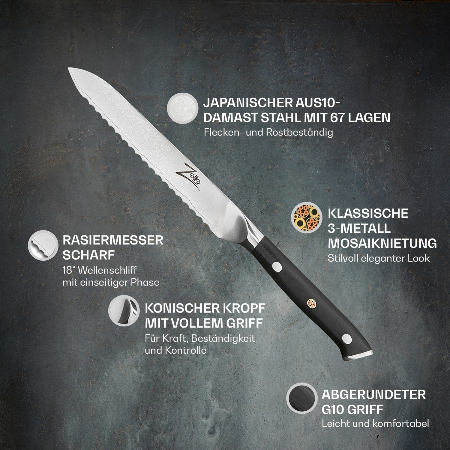 Alpha-Royal Japanese Serie 5,5″ Allzweckmesser Wellen Damast-Stahl