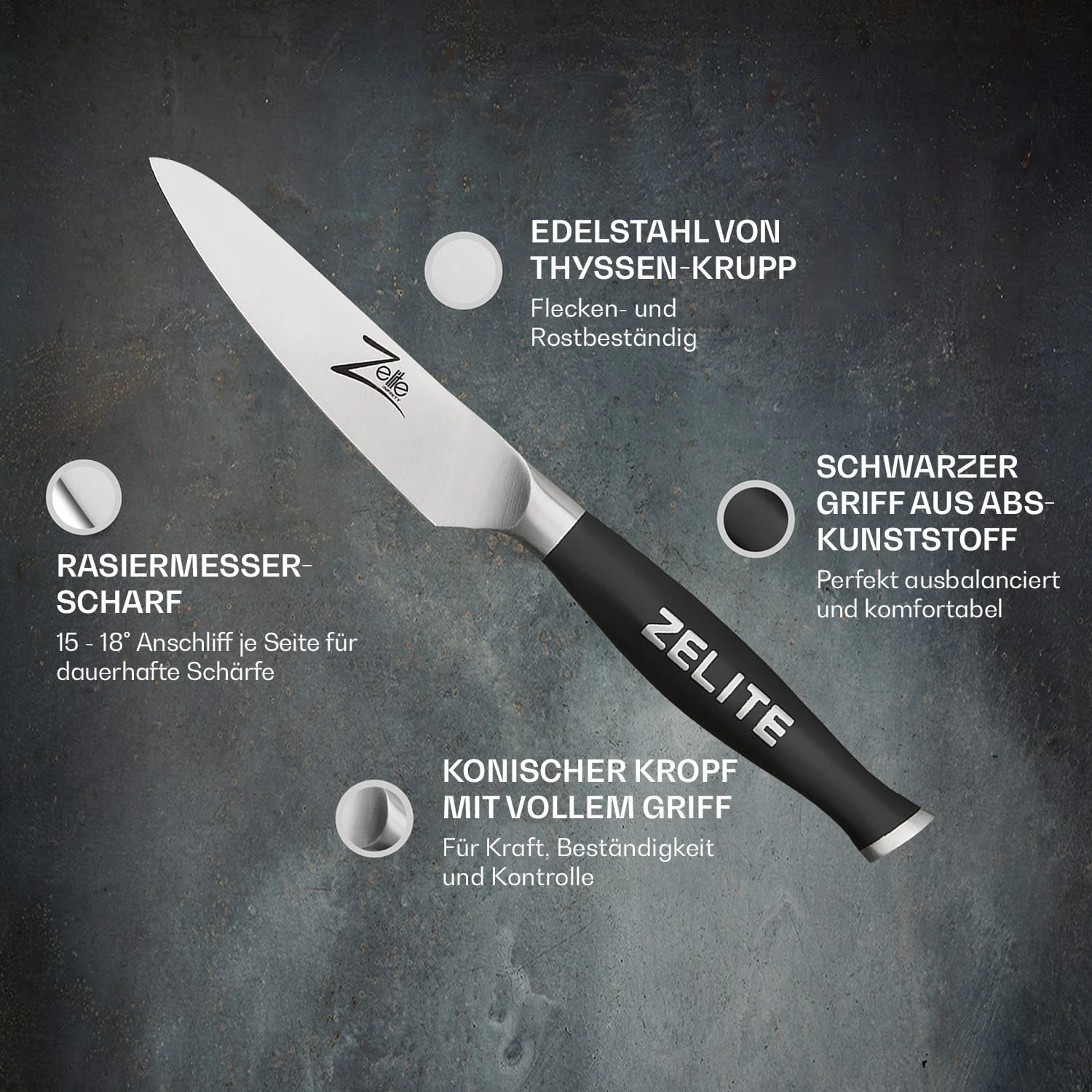 Das Zelite Infinity by Klarstein Comfort Pro 4″ Schälmesser ist dabei das kleine Präzisionswunder in der Küche. Seine Klinge erlaubt das einfache Abtrennen von Obst- und Gemüseschalen sowie sehr genaue Schneidearbeiten zum Beispiel beim Dekorieren. Manche Köche halten es nach dem Chefmesser für das wichtigste Messer in der Küche. Ergänze deine Küchenmesser oder nutze es als perfektes Geschenk für kochende Freunde.