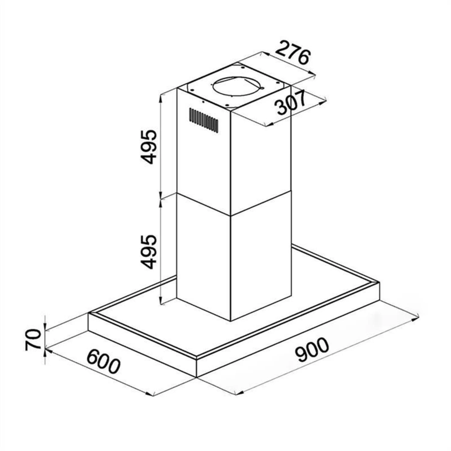 - Absaugfläche: 71 x 35,5 cm
