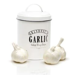 Der platzsparende Emaille-Knoblauchtopf Montana von Klarstein im Vintage-Design der 40er Jahre mit der Aufschrift „GARLIC“ ist nicht nur sehr stabil und groß genug für die Knoblauchlagerung von ca. 1,2 kg, sondern auch ein absoluter Blickfang in jeder Küche. Was oft vergessen wird: Knoblauch ist vor allem dann lange haltbar, wenn er dunkel und bei leichter Luftzirkulation gelagert wird. Durch die kleinen Lüftungslöcher im Knoblauchbehälter wird die Keimbildung verhindert und die Knoblauch-Zwiebel bleibt länger frisch. Die Aufbewahrungsbox kann selbstverständlich auch für die Lagerung von anderem Gemüse verwendet werden und lässt sich schnell und einfach mit einem feuchten Tuch reinigen. Mit einem Durchmesser von 12 cm und einer Höhe von 18 cm passt diese Knoblauchaufbewahrung im Landhaus-Stil bequem auf dein Sideboard, deine Küchenzeile oder in den Küchenschrank. Das stabile rostfreie Emaille-Stahlblech ist sehr robust und kann – anders als Steingut oder Porzellanbehälter – den ein oder anderen unabsichtlichen Sturz überstehen.