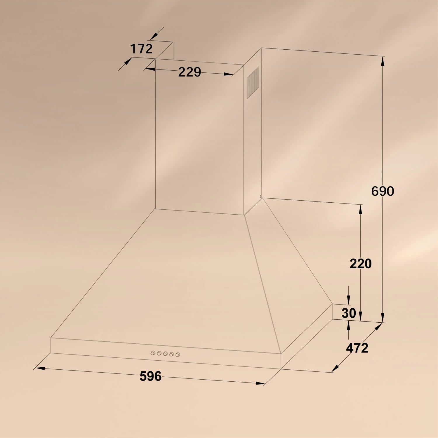 - Maße Dunstabzugshaube (ohne Kaminverblendung): ca. 60 x 30 x 48 cm (BxHxT)